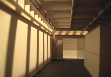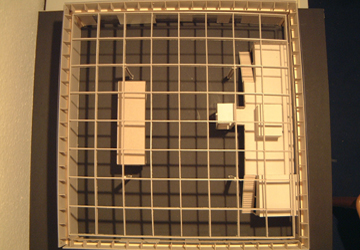 Über dieses Raster von 3,50m entstand die Aufteilung der verschiedenen Bereiche. Die zwei Kerne stehen frei unter dem Rost.